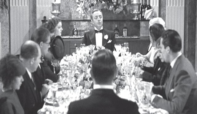 டைனிங் டேபிளில் கிளைமாக்ஸ்: பின்னர் நிக், ஒரு பார்ட்டி ஏற்பாடு செய்து சந்தேக லிஸ்ட்டில் இருப்பவர்களை வரவழைக்கிறார். டொரோத்தி, அவளுடைய வருங்கால கணவர், வைனன்ட்டின் மகன், மனைவி மீமி, புக் கீப்பர் டான்னர், வழக்கறிஞர் மக்காலே, மீமியின் புதுக் கணவர், புது மனைவியுடன் வருகிறார். போலீஸ் துறை மூலமாக ஒவ்வொருவரும் ஒவ்வொரு இடத்திலிருந்து அழைத்து வரப்படு கிறார்கள். அங்கே சப்ளை செய்வர்களில் பாதிபேர் போலீஸார். மொத்த கிளைமாக்ஸும் ஒரு டைனிங் டேபிளில் முடிந்து விடுகிறது.‘த தின் மேன்’ சீரிஸின் ஹைலைட்டே கிளைமாக்ஸில் கும்பலைக் கூட்டுவதுதான்.