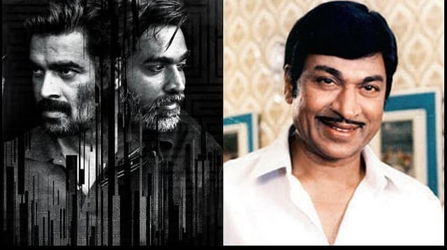 ‘விக்ரம் வேதா’ நடிகர் பட்டியலில் மறைந்த கன்னட நடிகர் ராஜ்குமாரின் படம் இடம்பெற்றது சர்ச்சையை ஏற்படுத்தியுள்ளது.