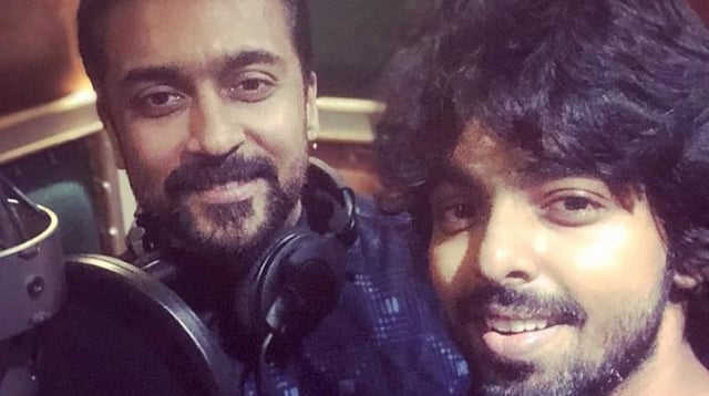 இந்நிலையில், இப்படத்தில் ராப் பாடல் ஒன்றைப் பாடியுள்ளார் சூர்யா. தீம் இசையில் இந்த ராப் இடம்பெறுகிறது. இத்தகவலை, ஜி.வி.பிரகாஷ் ட்விட்டரில் தெரிவித்துள்ளார். ‘அஞ்சான்’ படத்தில் ‘ஏக் தோ தீன் சார்’ பாடலின் மூலம் பாடகரான சூர்யா, ‘பார்ட்டி’ படத்தில் கார்த்தியுடன் இணைந்து சில வரிகளைப் பாடியுள்ளார் என்பது குறிப்பிடத்தக்கது.
