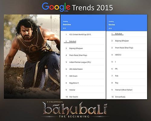 2015ம் ஆண்டுக்கான கூகுள் இந்தியாவின் மொத்த தேடலில் 'பாகுபலி' இரண்டாம் இடத்தையும், படங்களின் பெயர் தேடலில் முதல் இடத்தையும் பெற்று சாதனை படைத்திருக்கிறது.
