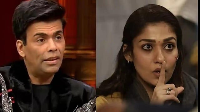 இதற்கு பதிலளித்த சமந்தா, 'இப்போதுதான் நயன்தாராவுடன் 'காத்து வாக்குல ரெண்டு காதல்' படத்தில் நடித்தேன்'' என்றார். அவரது இந்த பதில் மூலம் நயன்தாரா தான் முன்னணி நடிகை என்று சமந்தா குறிப்பிட்டார். அப்போது நிகழ்ச்சி தொகுப்பாளரான கரண் ஜோஹர், 'என் லிஸ்டில் அப்படி இல்லையே?' என்று கூறிவிட்டு ஓர்மேக்ஸ் மீடியா கருத்துக்கணிப்பில் சமந்தாதான் நம்பர் ஒன் நடிகை என்று இருப்பதைக் குறிப்பிட்டார். இதையடுத்து நயன்தாரா ரசிகர்கள், கரண் ஜோஹருக்கு எதிரான சமூக வலைதளங்களில் கருத்துகளை தெரிவித்து வருகின்றனர்.