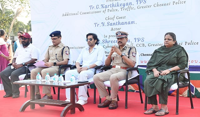 இதில் நடிகர் சந்தானம் சிறப்பு விருந்தினராகக் கலந்து கொண்டு பேரணியைத் தொடங்கி வைத்தார். நிகழ்ச்சியில் நடிகர் சந்தானம் பேசியதாவது: முன்பெல்லாம் வீட்டுக்குள் புகுந்து திருடுவாங்க. இப்போது வீடியோ கால் மூலமாகவே திருட ஆரம்பிச்சிட்டாங்க.