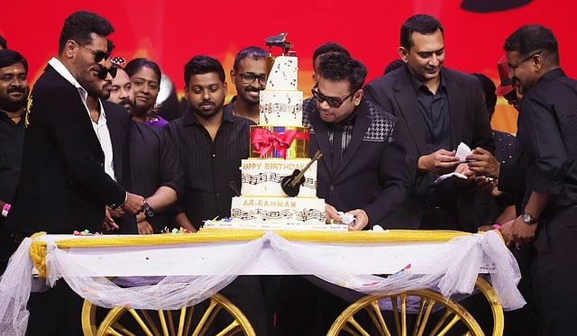 பின்னர் ரஹ்மானின் பிறந்தநாளை முன்னிட்டு, பிரம்மாண்ட கேக் வெட்டி கொண்டாடினர். இந்நிகழ்ச்சியில் பேசிய யோகிபாபு, தான் 16 கெட்டப்புகளில் நடித்துள்ளதாகத் தெரிவித்தார்.