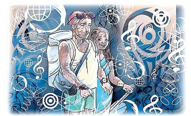 எனக்கும் பயங்கர ஆசை வந்து, ‘எங்கே டாட்டூ மெஷின்? நாமும் வரைந்து கொள்வோம்?’ என்று கேட்டேன். அதுக்கு அவரோ, ‘நான் இந்தியாவுக்கு விடுமுறை கொண்டாட்டத்துக்காக வந்ததால் அதை யெல்லாம் மூட்டைக் கட்டி வைத்துவிட்டு வந்தேன்!’ என்றார். தொடர்ந்து அவரிடம் பேசிக்கொண்டே இருந்தேன்.