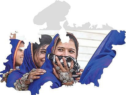 அரசியல், சமூகத் தளங்களில் முன்னேறிய வகுப்பினரே ஆதிக்கம் செலுத்துகின்றனர். தாக்கூர்கள், பிராமணர்கள், பனியாக்கள், காயஸ்த சமூகத்தினர் ஆகியோர் முன்னேறிய சமூகத்தினர். சாதிப் பாகுபாடு அதிகம் உள்ள மாநிலம். பட்டியலின சமூகத்தினர், பழங்குடியினருக்கு எதிரான குற்றங்கள் அதிகம். 2014 முதல் 2016 வரையிலான காலகட்டத்தில், பட்டியலின சமூகத்தினருக்கு எதிரான குற்றங்கள் 49.9% அதிகரித்திருக்கின்றன; பழங்குடியினருக்கு எதிரான குற்றங்கள் 15.6% அதிகரித்திருக்கின்றன.