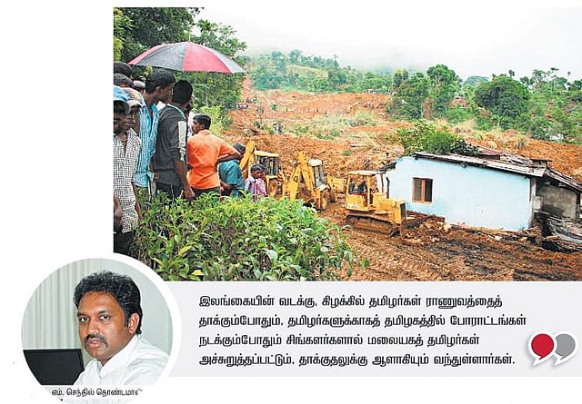 200 தமிழர்கள் மண்ணில் புதைந்து இப்படியொரு துயரச் சம்பவம் நிகழ்ந்த பிறகுதான் தமிழகத்திலுள்ள தமிழர்கள் எங்களைப் பற்றிப் பேசவே தொடங்கியிருக்கிறார்கள். லட்சக் கணக்கான தமிழர்கள் எந்த வசதியுமின்றிப் பல ஆண்டுகளாக வாழ்ந்துகொண்டிருக்கிறோம். இலங்கை யில் வடக்கு, கிழக்கில் வாழும் தமிழர்களுக்குப் பிரச்சினை என்றால், தமிழகம் கொதித்து எழும். ஆனால், தமிழ்நாட்டில் அவர்களின் சொந்தபந்தங்களாக இருந்து, பிழைப்புக்காக இங்கே வந்து தவித்துக்கொண்டிருக்கும் எங்களுக்காகக் குரல்கொடுக்க யாருமே இல்லை. ஒருசில விதிவிலக்குகளைத் தவிர, தமிழ்நாட்டுத் தலைவர்களும் சரி, ஈழத் தமிழர் தலைவர்களும் சரி அமைதிதான் காக்கிறார்கள்.