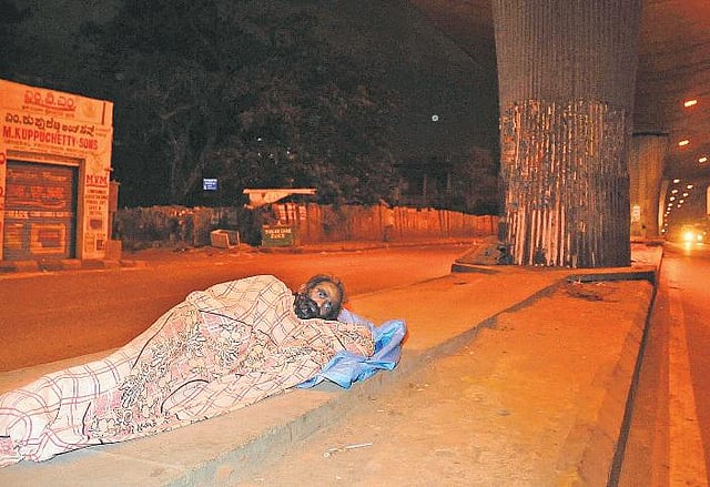 இரவு நேரக் குளிரில் வீடற்றவர்கள் நடைபாதையில் தூங்கிக்கொண்டிருப்பது தேசிய அவமானம்.