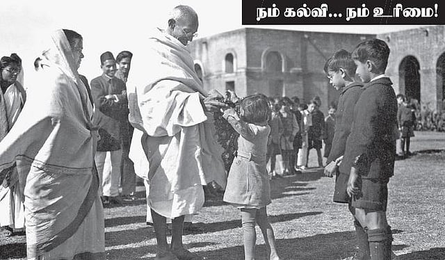 கல்வியைப் பற்றி காந்தி இப்படிச் சொன்னார்: “இன்று கல்வி கற்பது என்பதே ஆங்கிலம் கற்பதுதான் எனும் சூழல்தான் நிலவுகிறது. உண்மையான சிக்கல் என்னவென்றால், நம் மக்களுக்குக் கல்வி என்றால் என்னவென்றே புரியவில்லை. பங்குச் சந்தையில் முதலீடு செய்யப்பட்டுள்ள பங்குகளை மதிப்பீடு செய்வதுபோலவோ, நிலத்தை மதிப்பீடு செய்வதைப் போலவோ நாம் கல்வியையும் மதிப்பீடு செய்கிறோம். மாணவர்கள் மேலும் பணம் பண்ண என்ன வேண்டுமோ அதை வழங்குவதே கல்வி என்கிறோம் நாம்.”