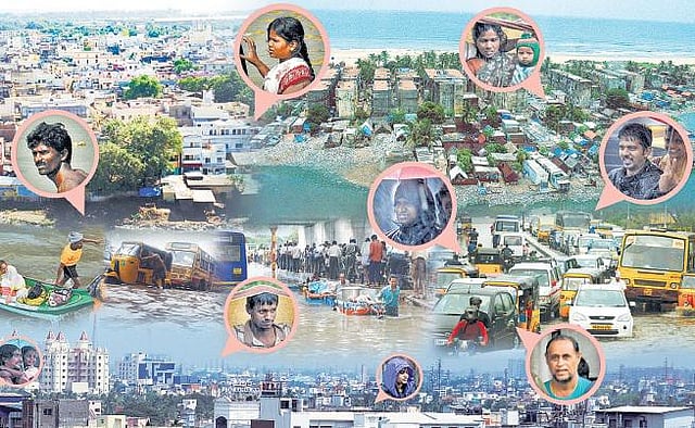 மயக் காலத்துல சென்னய அதிகாரிங்க நல்லா சோக்கா வெச்சுனு கீறாங்கோன்னு நென்ச்சுக்குக்குனு கீற நீயி! உன்க்கு ஒரு விசயம் சொல்ட்டமா... மய பேஞ்சா, வெள்ளம் வந்தா நாங்கதான் மொதல்ல மெதப்பம். உனக்கு என்னா? நீ உன் சொந்தக்காரன், மாமன், மச்சான் வூடுன்னு குஷாலா குந்திக்குவே. எங்களுக்கு எவனும் எடம் குடுக்க மாட்டான் நைனா இந்தப் பட்டணத்துல! பக்கத்துலயே பெரிய பெரிய கட்டடங்கோ இருக்கும். அங்க இருந்துக்கினு எங்கள வேடிக்க பாப்பாங்களே கண்டி எடம் குடுக்க மாட்டான். அப்புறம் கரண்டு. இன்னாவோ அது மட்டும் சுகுர்றா சொல்லிக்கினே! ஆனா, மயக் காலத்துல அதான் எங்களுக்கு டெரரா பூடும். தண்ணியில கால வெச்சு கரண்டு வலிக்குமா? இல்ல தண்ணி வலிக்குமான்னு தெர்யாம உக்காந்துக்கிறோம். நீ இன்னான்னா…