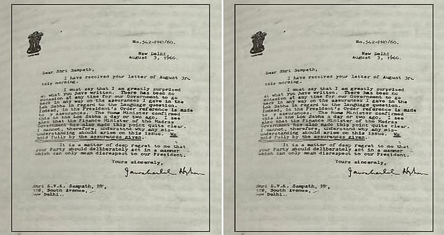 இந்தி மொழி திணிப்பு விவகாரத்தில் ஈவிகே சம்பத்துக்கு பிரதமர் ஜவஹர்லால் நேரு எழுதிய கடிதம்
