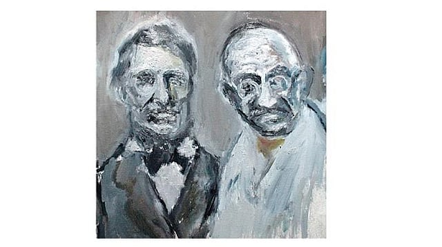 அமெரிக்கத் தத்துவவியலாளர் ஹென்றி டேவிட் தாரோவிடமிருந்து சத்தியாக்கிரகப் போராட்டத்துக்கான சாரத்தைப் பெற்றார். ஜான் ரஸ்கினிடமிருந்து உடல் உழைப்பு ஆன்மிக முன்னேற்றத்துக்கு உதவும் என்பதைக் கற்றார். பாரசீகக் கவிஞர் ஜலாலுதீன் ரூமியிடமிருந்து அகிம்சையின் நோக்கத்தைத் தெளிகிறார். காந்தி தனது 26-ம் வயதில் ஸ்வான்டன் மொழிபெயர்த்த ஜலாலுதீன் ரூமியின் கவிதைகளைப் படித்தார். ‘உடம்பை வளர்த்தேன் உயிர்வளர்த்தேனே’ என்ற திருமூலர் வழியை ரூமியினுடையது ஞாபகப்படுத்துகிறது. ரூமியின் இந்த அம்சம்தான் காந்தியைக் கவர்ந்திருக்க வேண்டும்.