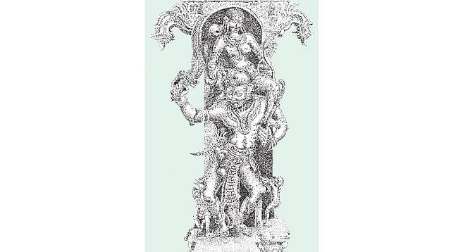 தோளில் உள்ள இளவரசியின் பாரத்தால் குறவனின் உடல் சற்று வளைந்திருக்கிறது. வலது கையில் வாளும் இடது கையில் வில்லும் கம்பீரமாகக் காணப்படுகின்றன. குறவனின் தோளில் உள்ள இளவரசி முகத்தில் மகிழ்ச்சி கூத்தாடுகிறது. சுருண்ட தலைக்கொண்டையைப் பிடித்திருக்கிறாள்.