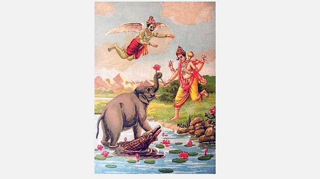 ஒரு நாள் நதிக்கு நீராடச் சென்றபோது குளித்து மலர் கொய்து திரும்புகையில் ஆற்றில் இருந்த முதலை, கஜராஜனின் காலைக் கவ்வியது. தன்னால் இயன்ற மட்டும் கஜராஜன், தன்னை விடுவித்துக்கொள்ளப் போராடியது.