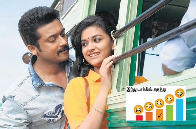 ‘ஒருத்தன் பணக்காரனா இருக்க ஒரு கோடி பேரை பிச்சைக்காரனா ஆக்குறானுங்க’, ‘நெஞ்சுல நேர்மையும், செய்யுற செயல்ல நியாயமும் இருந்ததுன்னா நாம எதுக்குமே பயப்படத் தேவையில்லை' என்பது போன்ற வசனங்கள் கவனிக்க வைக்கின்றன. கீர்த்தி சுரேஷ் என்ன ஆனார், சூர்யாவுடன் இருந்த கூட்டணி இறுதியில் என்ன ஆனது, நந்தா எப்போது சூர்யாவுடன் சேர்ந்தார் என நிறைய கேள்விகள் எழுகின்றன. அதற்கு படத்தில் பதில் இல்லை. க்ளைமாக்ஸ் சண்டைக்குப் பிறகு வரும் காட்சி யில் நம்பகத்தன்மை இல்லை. இது சீரியஸான படமா, நகைச்சுவைப் படமா என்ற சந்தேகம் வருவதையும் தவிர்க்க முடியவில்லை. ‘லாஜிக் வேண்டாம்; மேஜிக் போதும்’ என்ற கூட்டம் தானாக சேரும் என்ற நம்பிக்கையில் எடுக்கப்பட்டுள்ள படம்!