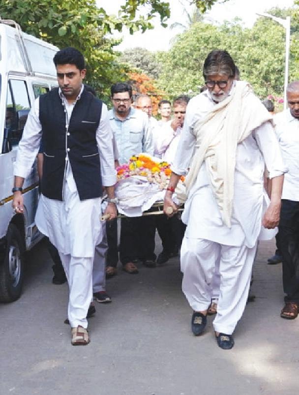 என் அலுவலகத்தில், எங்கள் தினசரி வாழ்க்கையில் ஒரு வெற்றிடம் ஏற்பட்டுள்ளது” என்று தனது இணையதளத்தில் உணர்ச்சி பொங்க உதவியாளருக்கு விடை கொடுத்திருக்கிறார் அமிதாப் பச்சன். தன் உதவியாளரின் உடலை அமிதாப் சுமந்துசெல்லும் ஒளிப்படங்கள் சமூக வலையில் வேகமாகப் பரவிவருகின்றன.