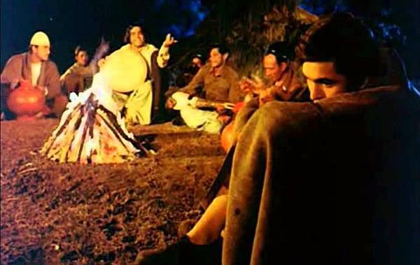 பல இந்திப் படங்களில் நாம் ஒரு காட்சியைப் பார்க்கலாம். குளிர் காய நெருப்பை மூட்டி சுற்றிலும் ஒரு குழுவாக அமர்ந்து பலர் பாடுவார்கள். அவ்வகைப் பாடல்களின் சூழல், அவர்களிடம் தஞ்சம் அடைந்திருக்கும் காதலர்களின் நிலையை விளக்குவதாக அமைந்திருக்கும். அப்படிப்பட்ட சூழலில் நரேந்திர சஞ்சலே பாடகராக நடித்து, பாடிய ‘பாபி’ படத்தின் மற்றொரு முக்கியப் பாடலின் பொருள்.