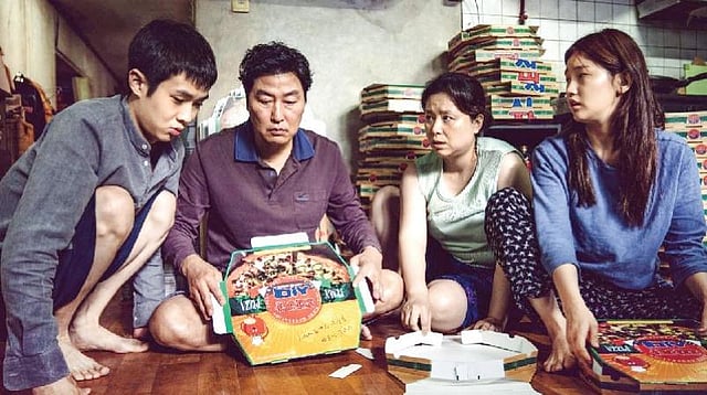 எதிர்பாராமல் அமையும் ஒரு வாய்ப்பைப் பயன்படுத்திக்கொண்டு, ஒரு பெரிய பணக்காரக் குடும்பத்துக்குள் ஒருவர் பின் ஒருவராகப் பணியாட்கள் என்ற போர்வையில் ஊடுருவுகிறது ஒரு நலிந்த குடும்பம். முதலில் உள்ளே நுழையும் மகன், பின், தனது அக்காவை ஓவிய ஆசிரியராக உள்ளே நுழைக்கிறான்.