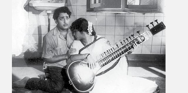கே.ஆர்.விஜயாவின் கரங்களில் சிவகாமி மகனிடம் சேதி சொல்லச் சொன்ன வீணை, சரோஜாதேவியின் கைகளிலோ துன்பத்தால் நாதம் இல்லாமல் தூங்கிப்போன இதயவீணை ஆனது. பாக்யலட்சுமியின் மாலைப் பொழுது மயக்கத்தைச் சூசகமாகச் சொன்ன சுகமான வீணையை எப்படி மறப்பது?