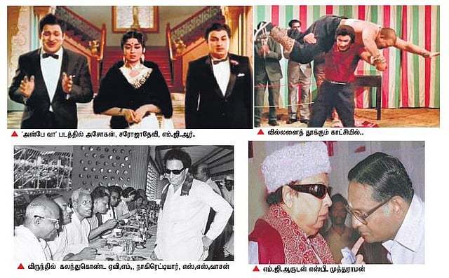 ‘‘நம்ம அசோகன் நேரங்கெட்ட நேரத் துல சாப்பிட வருவாரு. அவருக்கு சாப்பாடு எடுத்து வைங்க’’ என்பார். அது அசோகன் மீது எம்.ஜி.ஆர் காட்டிய அன்பின் அடையாளம். எம்.ஜி.ஆரின் விருந்தோம்பல் சரித்திரத்தில் இடம் பெற்றது. அதற்கு அடையாளமாக எம்.ஜி.ஆர் பந்தி விசாரிக்க, ஏவி.எம். செட்டியார், நாகிரெட்டியார், எஸ்.எஸ்.வாசன் ஆகியோர் விருந் துண்ணும் புகைப்படத்தைப் பார்த்தாலே உங்களுக்குப் புரியும்.