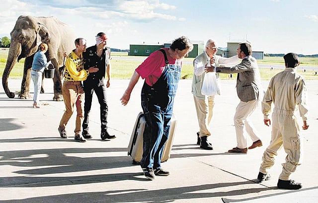 காட்டுக்குள் சர்க்கஸ் கம்பெனியாரிடம் தஞ்சமடையும் ஆலன், அக்குழுவிடமுள்ள யானையுடன் ஆற்றில் நீந்திக்குளித்து விளையாடுகிறார். பணப்பெட்டியைத் தேடிவரும் கடத்தல் கும்பலின் முக்கிய ஆசாமி அது இவரிடம் இருப்பதைக் கண்டுபிடித்துவிடுகிறார். யானை இருப்பது தெரியாமல் ஆலனையும் சர்க்கஸ் குழுவையும் துப்பாக்கி முனையில் மிரட்டுகிறார் அந்த ஆசாமி. எல்லோரும் நடுங்கியவாறே பணப்பெட்டியை அவனிடம் கொண்டு வந்துகொடுக்கும் வரை காத்திராமல் அவனுக்குப் பின்னே வரும் யானை அந்த ஆசாமியை நசுக்கிவிடுகிறது. இப்படிப் படம் முழுவதும் நகைச்சுவைக்குப் பஞ்சமில்லை.