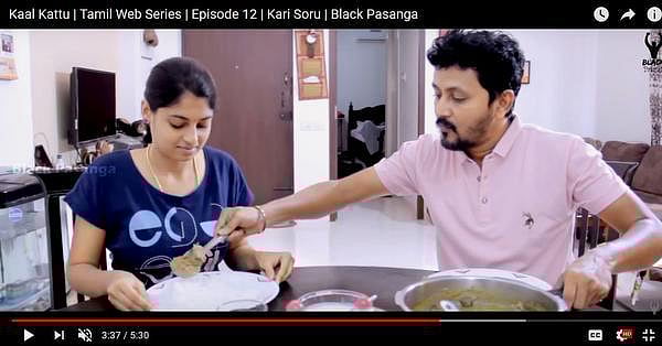 அந்த வகையில் காதல் திருமணம் செய்துகொண்ட இளம் தம்பதியினரின் உறவு சிக்கல்களைச் சிரிக்கவும் சிந்திக்க வைக்கும் வகையில் ‘பிளாக் பசங்க’ என்ற பேனரில் யூடியூபில் ‘கால்கட்டு’ என்ற இணையத் தொடராகத் தந்துகொண்டிருக்கிறார் வெற்றிவேல் சந்திரசேகர். காதல் கல்யாணத்தில் முடிகிறதோ இல்லையோ; பெரும்பாலும் கல்யாணத்தோடு தீர்ந்துபோய்விடுகிறது காதல்.