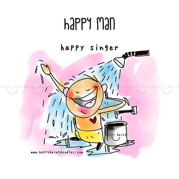 ‘ஹேப்பி மேன்’, ‘ஹேப்பி உமன்’, ‘ஹேப்பி லாலா’ (எல்லோருக்கும் பிடித்த உயிரினங்களில் ஒன்றான யானை) ஆகிய மூன்று கதாபாத்திரங்களும் வாழ்க்கையில் தங்களுக்கான மகிழ்ச்சியை எப்படிக் கண்டடைகின்றன என்பதுதான் இவருடைய ஓவியங்களின் மையம்.