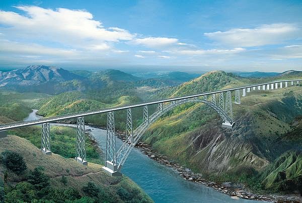 இரு மலைகளுக்கு இடையே 480 மீட்டர் அகலத்தில் இரும்பு வளைவுகளுடன் பாலம் உருவாக்கப்பட்டுவருகிறது. டெல்லியில் உள்ள குதூப்மினாரைவிட இந்தப் பாலம் 5 மடங்கு உயரம் அதிகம். உலகிலேயே உயரமான பாலமாகக் கருதப்படும் பிரான்ஸ் நாட்டின் மில்லவ் பாலத்தைவிட இது 17 மீட்டர் உயரம் அதிகம். அடுத்த ஆண்டு முதல் இந்த மெகா ரயில் பாலத்தில் ரயில்கள் ஓடும் என்று எதிர்பார்க்கப்படுகிறது.