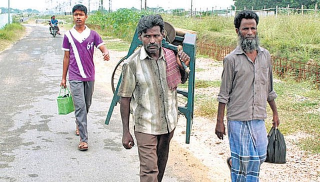 அதிகாலை 4 மணி அளவிலேயே விழித்துக்கொள்கிறது இந்தக் கிராமம். அங்கிருந்து மின்சார விளக்குகள் இல்லாத சாலையில் 2 கிலோ மீட்டர் நடந்து திருவாலங்காடு ரயில் நிலையத்தை அடைய வேண்டும். சிலர் கிட்டதட்ட 20 கிலோ எடையுள்ள சாணை கால்மிதி எந்திரங்களைத் தோளில் சுமந்தவாறு நடக்கிறார்கள். இன்னும் சிலர் சென்னையில் வாடிக்கையாளர்களின் வீடுகளிலேயே அந்த எந்திரங்களை வைத்துவிட்டு வந்துவிடுவதால் வெறும் கையுடன் நடந்து ரயில் பிடிக்க விரைகிறார்கள். ஒரு ரயிலில் சுமார் 50 பேர் என்று அதிகாலையில் 300 பேர் தினமும் இரை தேடும் பறவைகள் போல சென்னையை நோக்கிப் பயணிக்கிறார்கள்!