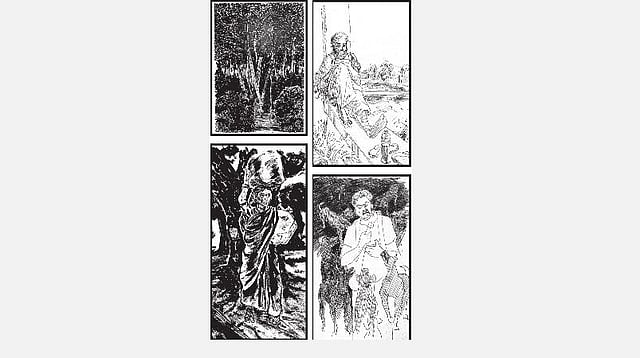 கிண்டலடித்து சிரித்திருக்கிறார்கள். சிவன், விநாயகர், புத்த என அந்தக் கடவுளர் தன்னைப் பார்த்து சிரிப்பது போலவும் இவர் அவற்றைக் கண்டுகொள்ளாமல் தன் பயணத்தைத் தொடர்வதுபோலவும் ஓர் ஓவியம் இடம்பெற்றிருக்கிறது.