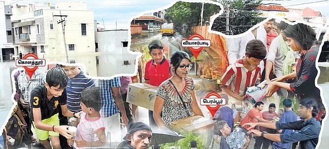 சேற்றில் சிக்கிய மாநகராட்சி துப்புறவு லாரியை மீட்பதற்குக் கைகொடுக்கின்றனர். போர்வைகள் வழங்குகிறார்கள். அதிகளவில் பணம் செலவழிக்க முடியாத வளரிளம் பருவத்தினர் பலர், கேன்களில் பால் நிரப்பிக் கொண்டு வந்து குழந்தைகளுக்கு விநியோகித்தனர்.