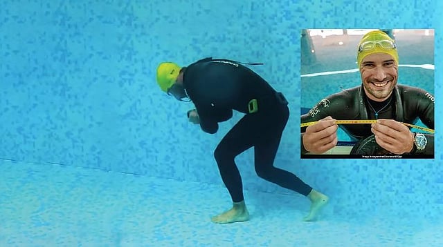 சிலரால் சாதாரணமாக மூச்சை தம் பிடித்துக்கொள்ள முடியாது. ஆனால், குரோஷியாவைச் சேர்ந்த இளைஞர் விட்டோமிர் தண்ணீருக்கடியில்கூட மூச்சை தம் பிடித்து வைத்துக்கொள்வதில் வல்லவர். அண்மையில் தண்ணீருக்கடியில் மூச்சை விடாமல் 107 மீட்டர் தொலைவு நடந்து காட்டியிருக்கிறார் விட்டோமிர். தண்ணீருக்கடியில் இருக்கும்போது மிதந்து மேலே வந்துவிடக் கூடாது என்பதற்காக இரண்டு கிலோ எடையுள்ள பொருளையும் சுமந்தே விட்டோமிர் நடந்திருக்கிறார். 3 நிமிடங்கள், 6 விநாடிகள் வரை மூச்சை தம் பிடித்துக்கொண்டு நடந்த விட்டோமிரின் இந்தச் சாதனை கின்னஸ் புத்தகத்திலும் இடம்பிடித்திருக்கிறது. விட்டோமிரின் இந்த சாதனையும் அவருடைய வித்தியாசமான பயிற்சிகளின் வீடியோக்களும் சமூக ஊடகங்களில் வெளியாகி வைரல் ஆகியிருக்கின்றன.