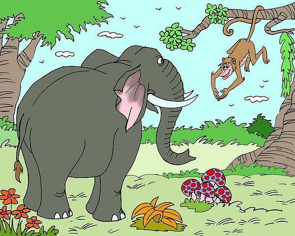 ட்டில் பலம் கொண்ட ஒரு யானை வாழ்ந்துவந்தது. அதன் பெரிய உருவம் கண்டு மற்ற விலங்குகளும் பறவைகளும் ஒதுங்கியே இருந்தன. இதனால் யானை நண்பர்கள் இன்றி, தனிமையில் தவித்தது. தன்னோடு நட்புடன் பழக ஒரு நண்பனைத் தேடியது. நாமே சென்று ஒரு நட்பை ஏற்படுத்திக் கொள்ளலாம் என்ற எண்ணத்தில் காட்டுக்குள் நடக்க ஆரம்பித்தது. வழியில் ஒரு மரத்தில் குரங்கைக் கண்டது.