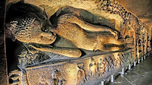முதல் குகை இன்றுவரை மிக நன்றாகப் பராமரிக்கப்பட்டு வருகிறது. மிகப் பெரிய புத்தர் உருவம் இங்கே செதுக்கப்பட்டுள்ளது. நேராகப் பார்க்கும்போது புன்னகையுடனும் பக்கவாட்டில் சோகமாகவும் தெரியும்படி வடிவமைக்கப்பட்டிருக்கிறது!