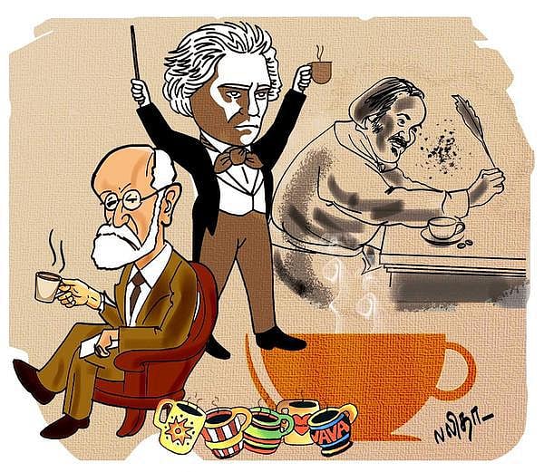 பீத்தோவனுக்கும் காபி பிடிக்கும்தான். ஆனால் காபிக்கொட்டையைப் போட்டு அரைத்தோமா, இறக்கினோமா குடித்தோமா என்று அவரால் இருக்க முடியாது. மாபெரும் இசை மேதையல்லவா? எல்லாமே சரியான அளவில் சரியாக ஒன்று கலக்கவேண்டும். அவருடைய காபியை அவரே அரைத்துக்கொள்வார். சரியாக 60 காபி கொட்டைகளைக் கவனமாக எண்ணித் தேர்ந்தெடுப்பார். கூடவோ குறையவோ செய்தால் காபியே குடிக்கமாட்டார்.