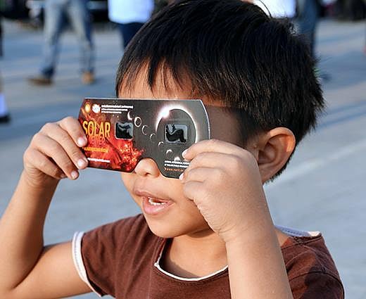 சூரியனின் கதிர்கள் மிகவும் பிரகாசமானவை. நாம் சாதாரண நாட்களில்கூட சூரியனை நேரடியாகப் பார்க்கக் கூடாது. கண்களுக்கு அந்த ஒளியால் பாதிப்பு ஏற்படலாம். ஓர் ஆடியில் சூரியக் கதிர்களைக் குவித்து, அந்த இடத்தில் ஒரு காகிதத்தை வைத்தால் தீப்பற்றி எரிந்துவிடும், உடலில் அந்தக் கதிர்கள் பட்டால் புண்ணாகிவிடும். தொலைநோக்கியில் கண்களுக்குப் பாதுகாப்பான ஃபில்டர் பொருத்தப்பட்டிருப்பதால், சூரியனைப் பார்த்தாலும் கண்களுக்குப் பாதிப்பு ஏற்படாது.