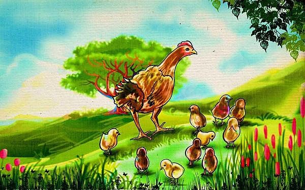 “கோழியே, ஏன் நீயும் உன் குஞ்சுகளும் இவ்வளவு மெலிந்து இருக்கிறீர்கள்?”