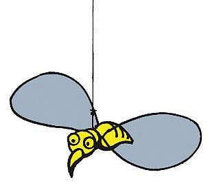 5 இறக்கைகளை உடம்புடன் பொருத்திக்கொள்ளுங்கள். குண்டூசியை வளைத்து அதை இறக்கைகள் இரண்டுக்கும் நடுவில் சொருகிக்கொள்ளுங்கள். கம்பி ஒன்றை குண்டூசியின் தலைப்பகுதியில் கட்டித் தொங்கவிடுங்கள். இப்போது காற்றடிக்கும்போது இறக்கைகளை அசைத்து தேனீ ஆடும் காட்சி அது பறப்பது போலவே இருக்கும்.