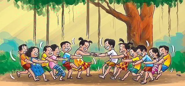 இரண்டு குழுவிலும் முன்னால் நிற்பவர் ஒருவர் கையை ஒருவர் இறுக்கமாகப் பிடித்துக்கொள்ள, பின்னால் இருப்பவர்கள் பலத்தைத் திரட்டி, அவரவர் பக்கம் இழுக்க வேண்டும். எந்தக் குழு வேகமாக முன்னால் இழுக்கிறதோ,அந்தக் குழுவே வெற்றி பெற்ற குழு.