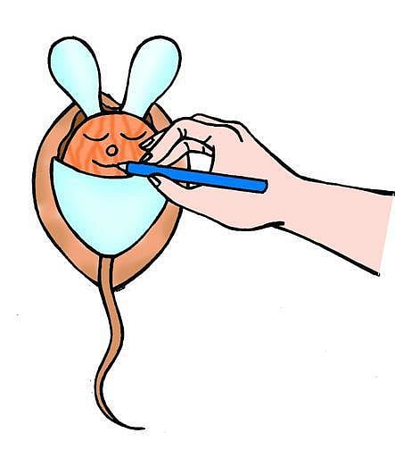 2.ஆல்மண்ட் கொட்டையின் மேல்பகுதியில் படத்தில் காட்டியிருப்பது போல எலியின் முகத்தை வரையவும்.