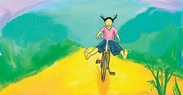 “பத்திரமா போ பாப்பா. போயிடுவதான”ன்னு அவர் கேட்டிருக் காரு. சைக்கிள் ஓட ஆரம்பிச்சிடுச்சி. கொஞ்ச நேரத்துல் அம்மா வேகமா பெடலை மிதிக்க ஆரம்பிச்சாங்க. சைக்கிள் வேகமா ஓடுது. எதிர்த்தாப்புல தெரிஞ்ச மரமெல்லாம் அம்மாவுக்குப் பின்னாடி வேகமா போய்க்கிட்டு இருந்துச்சு. அம்மாவுக்கு ஒரே சந்தோஷம். போன வேகத்துல அடுத்த ஊரே வந்துடுச்சி. ஆனா, வண்டிய ஓட்டத் தெரிஞ்ச அம்மாவுக்கு அதை எப்படி நிறுத்துறதுன்னு தெரியல.