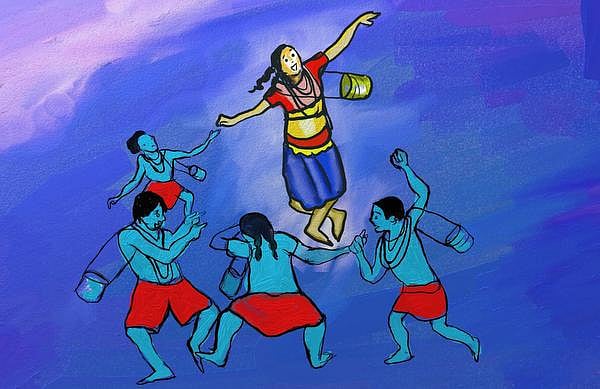 ஒருநாள் பள்ளிக்கூடத்து ஆண்டு விழாவுல நாடோடி டான்ஸ் போடலாமான்னு டீச்சர் கேட்டதுதான். எல்லாரும் ஓ…ன்னு கத்தி சரின்னு சொன்னாங்களாம். ரெண்டு பேர் பெண் வேஷம். ரெண்டு பேர் ஆண் வேஷம். அதுல அம்மாவும் ஆடுனாங்களாம். ஆண்டு விழா நடந்துச்சி. கழுத்துல டின்னு டப்பாவை மாட்டிகிட்டு, கொத்தா ஊசி, மணி, பாசிய கையில வச்சிகிட்டு. குதிச்சி குதிச்சி ஆடணும். ஆண் இந்தப் பக்கம் வந்தா பெண் அந்தப் பக்கம் ஓடணும். பின்னாடி இருந்து புள்ளைங்க பாடுனாங்களாம்.