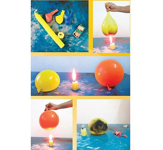 மெழுகுவர்த்தி, தீப்பெட்டி, பெரிய பலூன்கள், தண்ணீர்.