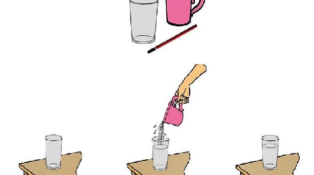 # இப்போது பென்சிலை தண்ணீருள்ள கண்ணாடி டம்ளரில் சாய்த்து வையுங்கள்.