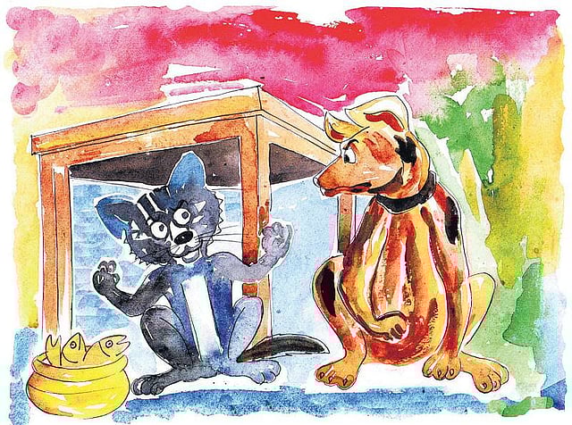 “ஜிம்மி வர்றியா… ஏதாவது சாப்பிடலாம்!’’ வீட்டைக் காவல் காத்துக்கொண்டிருந்த நாயை நான்காவது முறையாக அழைத்தது பூனை.