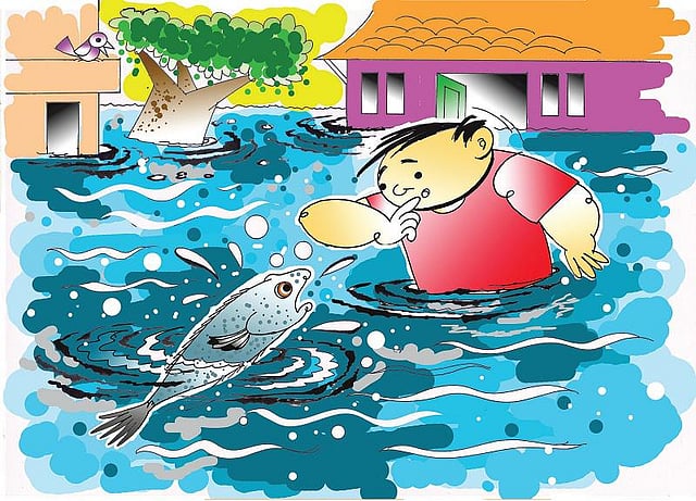 மழை பெய்து கொண்டேயிருந்தது. மழைன்னா மழை அப்படியொரு மழை. பத்து நாளாக மழை. பகலும் மழை. இரவும் மழை. மேகங்களிலிருந்து தண்ணீர் அருவி போல ஊற்றிக் கொண்டேயிருந்தது. ஏரி, குளங்கள், கிணறுகள் நிறைந்துவிட்டன. ஆறுகள் கரை புரண்டு ஓடின. ஏரி, குளம், ஆறுகளில் இருந்த மீன்கள் எல்லாம் தண்ணீருக்கடியில் போய் ஒளிந்துகொண்டன. மேலே வர முடியாதே. வந்தால் வெள்ளம் அடித்துக்கொண்டு போய்விடுமே. வற்றா ஏரியில் இருந்த விரால் மீன் கூட்டமும் ஏரியின் அடியில் போய் ஒளிந்துகொண்டது.