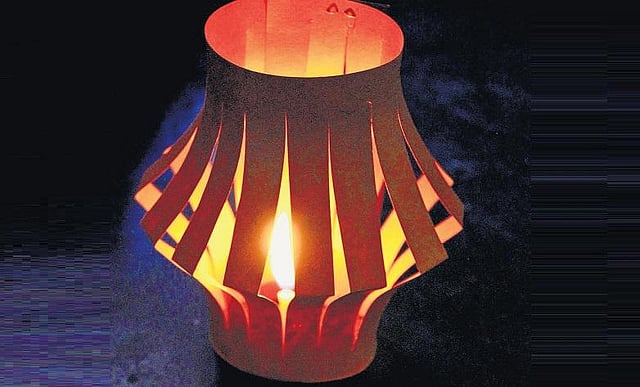 5. ஒரு மெழுகுவர்த்தியை ஏற்றி இதை நடுவில் வையுங்கள். ஒரு அழகான விளக்கு தயாராகிவிட்டதா?