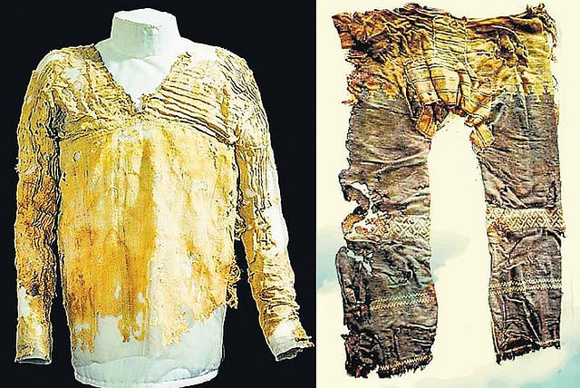 உலகின் மிகப் பழமையான கம்பளியால் செய்த கால் சட்டை, இன்றைய சீனாவின் மேற்குப் பகுதியில் கண்டுபிடிக்கப்பட்டிருக்கிறது. 3 ஆயிரம் ஆண்டுகளுக்கு முன்பு வாழ்ந்த நாடோடி தலைவர் ஒருவரின் கல்லறையில் இருந்து இந்தக் கால் சட்டை எடுக்கப்பட்டிருக்கிறது. பேண்ட் கம்பளியில் டிசைன்கள் போடப்பட்டு மிக அழகாக இருக்கிறது!