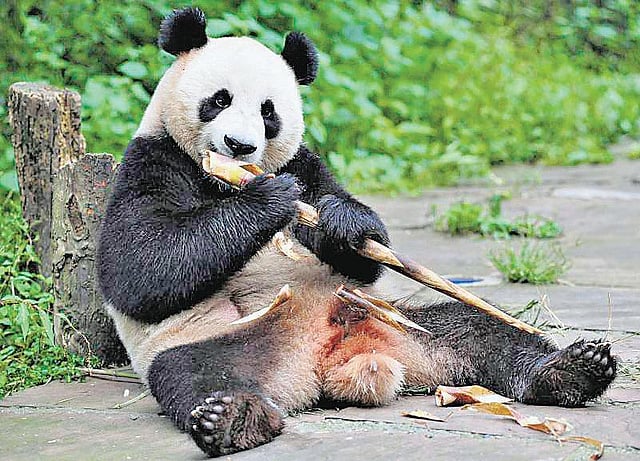 # பாண்டாக்களுக்கு மிகவும் பிடித்த உணவு மூங்கில். ஒரு வருடம்வரை பாண்டா குட்டிகள் பால் மட்டுமே குடிக்கும். மூங்கில் சாப்பிடாது.