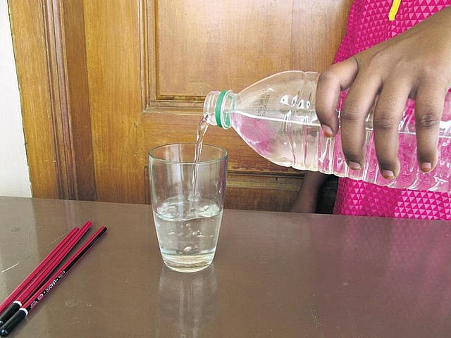 கண்ணாடி பாட்டிலிலுள்ள நீர் ஓர் அடர்வு மிகு ஊடகம் ஆகும். காற்று அடர்வு குறைந்த ஊடகம். அடர்வு மிகுந்த நீர் ஊடகத்திலிருந்து அடர்வு குறைந்த காற்று ஊடகத்துக்கு ஒளிக்கதிர் வரும்போது செங்குத்துக் கோட்டை விட்டு விலகிச் செல்லும். அடர்வு குறைந்த ஊடகத்திலிருந்து அடர்வு மிகுந்த ஊடகத்துக்கு ஒளிக்கதிர் செல்லும்போது செங்குத்துக் கோட்டை நோக்கி ஒளி விலகல் அடையும்.
