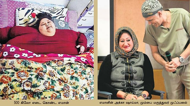 உலகின் மிகப் பெரிய குண்டுப் பெண்ணான எகிப்து நாட்டைச் சேர்ந்த எமான் அகமது பற்றித்தான் மருத்துவ உலகம் பரபரப்பாகப் பேசிக்கொண்டிருக்கிறது. சுமார் 500 கிலோ எடை கொண்ட இவருடைய உடல் அளவை குறைக்க உதவுமாறு, மருத்துவத்தில் வளர்ந்த பல நாடுகளுக்கும் கோரிக்கை வைக்கப்பட்டிருந்தது. ஆனால், எந்த நாடும் இந்தக் கோரிக்கையை ஏற்றுக்கொள்ளவில்லை. உடல் பருமன் அறுவைசிகிச்சையில் முன்னணியில் உள்ள வளர்ந்த நாடுகளே கண்டுகொள்ளாத எமான் அகமதுவின் கோரிக்கைக்கு இந்தியா செவிசாய்த்துள்ளது.